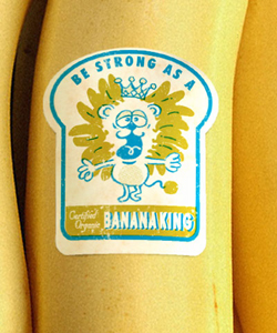 ライオンのたてがみがバナナになっている大胆なデザイン。ライオンというより「忍者ハットリ君」の獅子丸っぽい表情がとてもキュート。